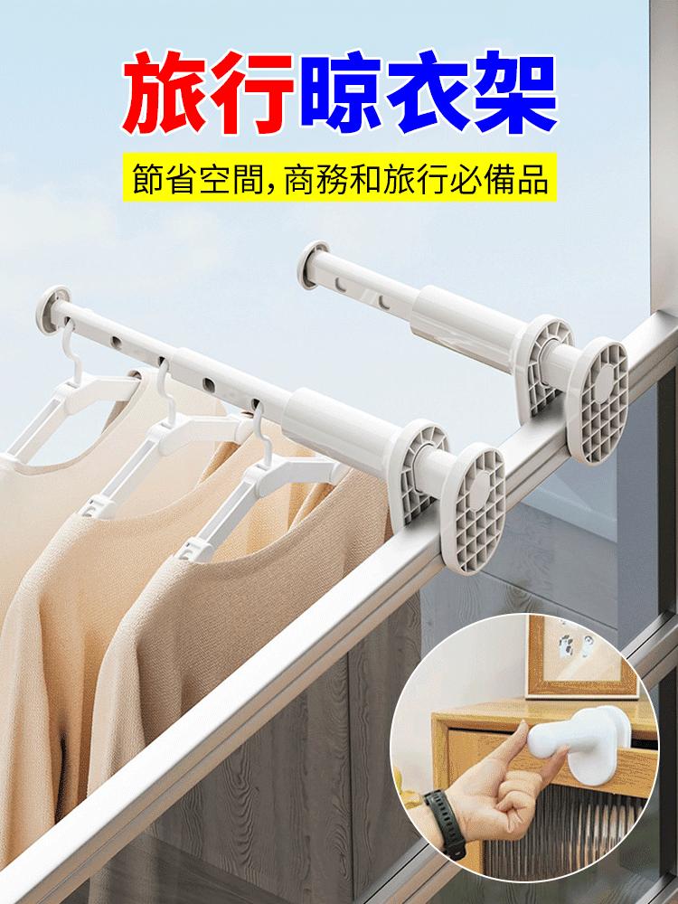 【承重10KG】免打孔可伸縮便攜晾衣架